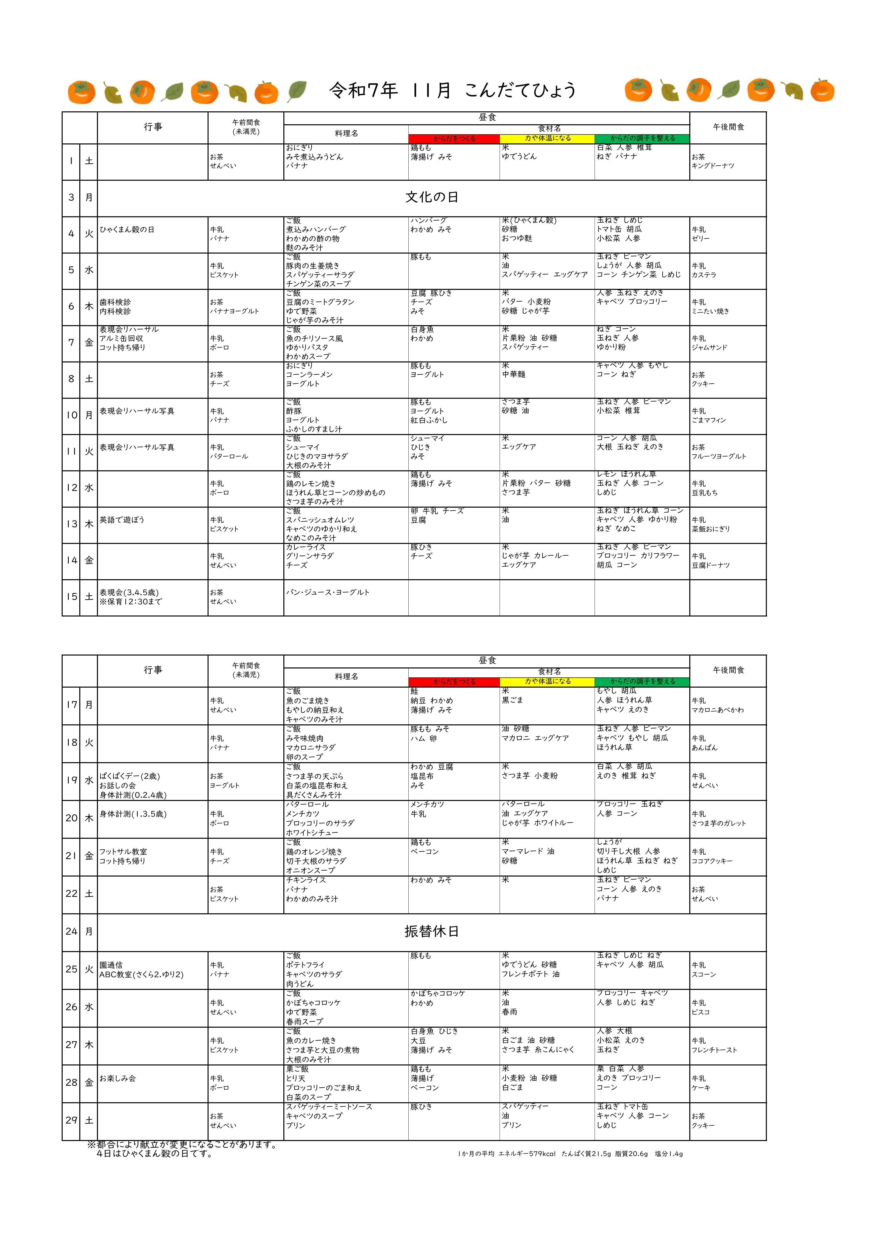 令和7年度11月のセンターだよりです。 閉館時間 午...